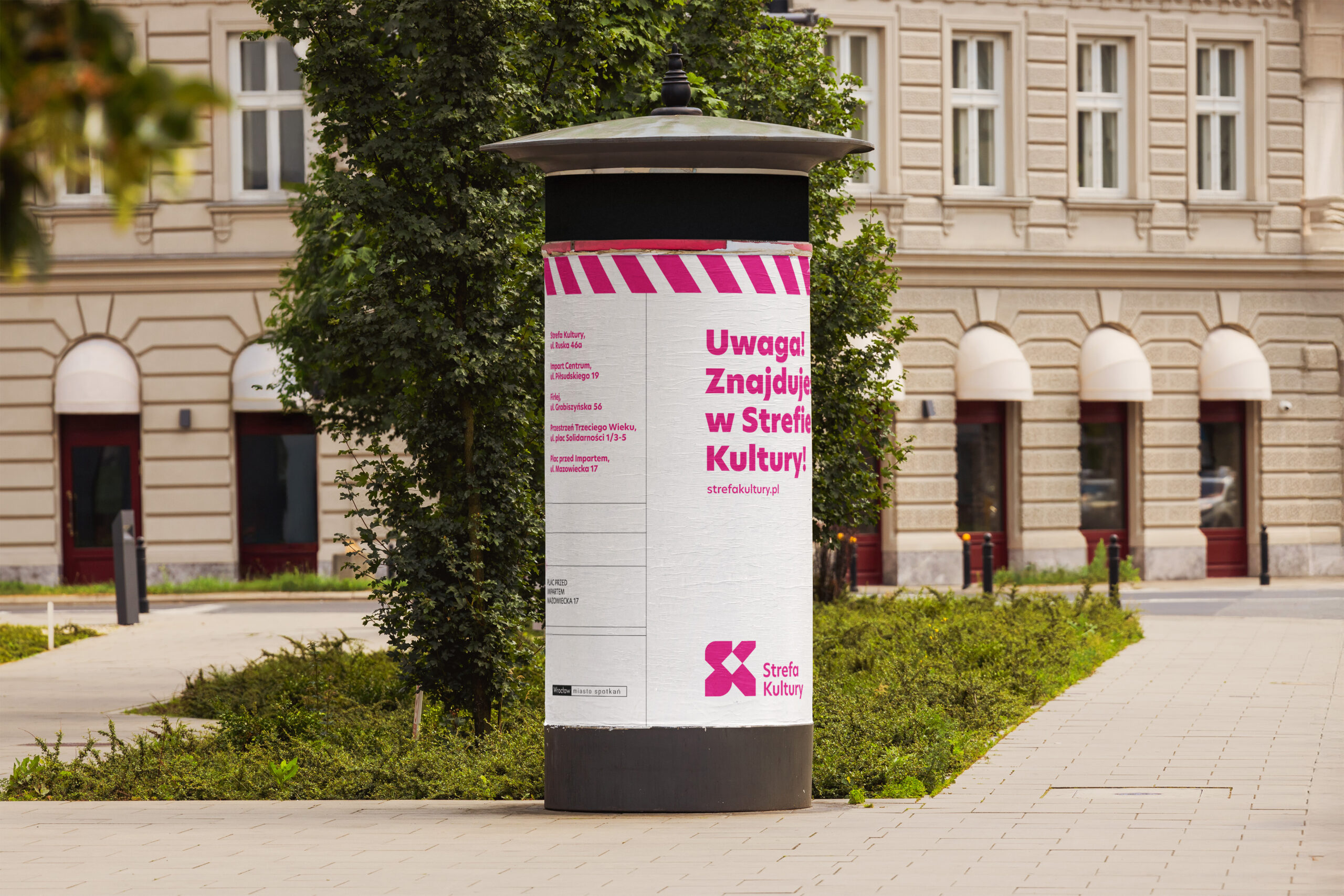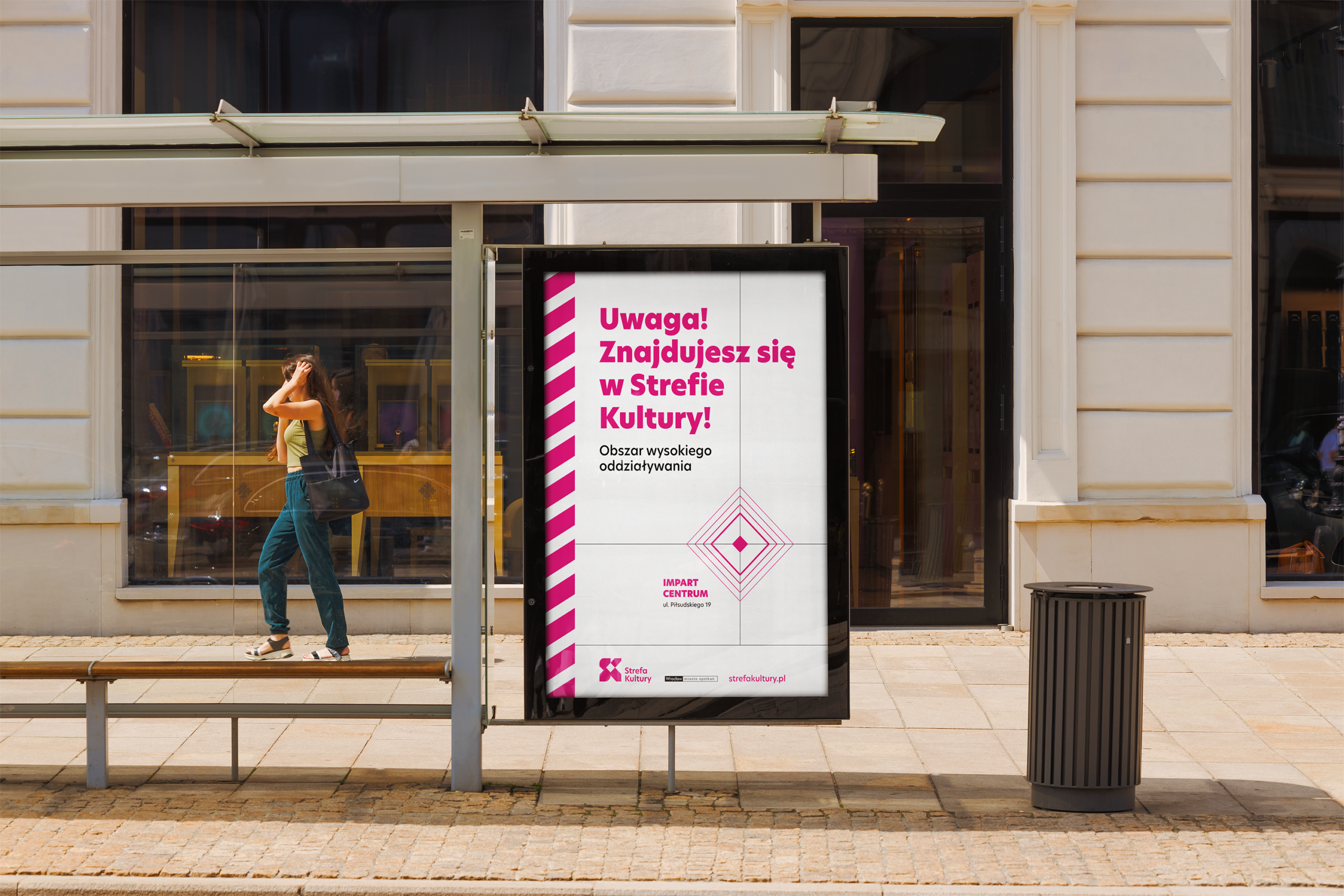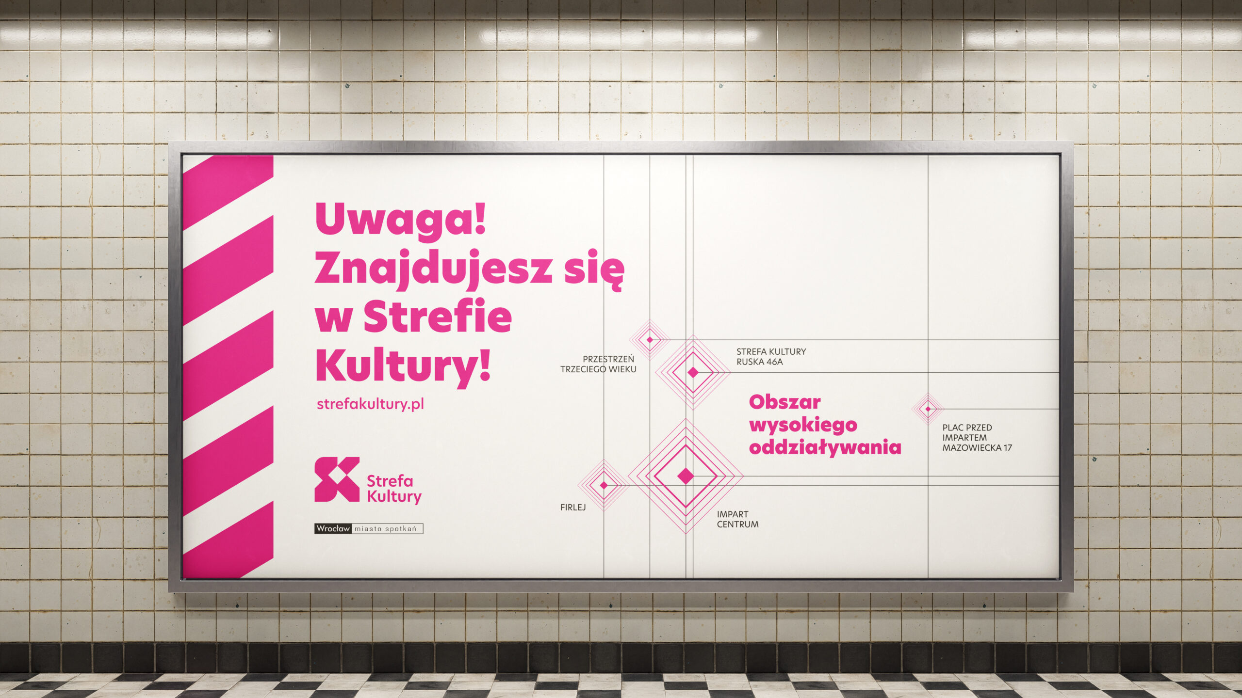Słownictwo kojarzone z zagrożeniem – zostaje odwrócone i użyte w pozytywnym kontekście. Strefa Kultury przedstawiona jest jako „teren oddziaływania”, który przenika miasto i codzienność mieszkańców. Kreacje pojawiły się w outdoorze – na słupach, przystankach i billboardach.