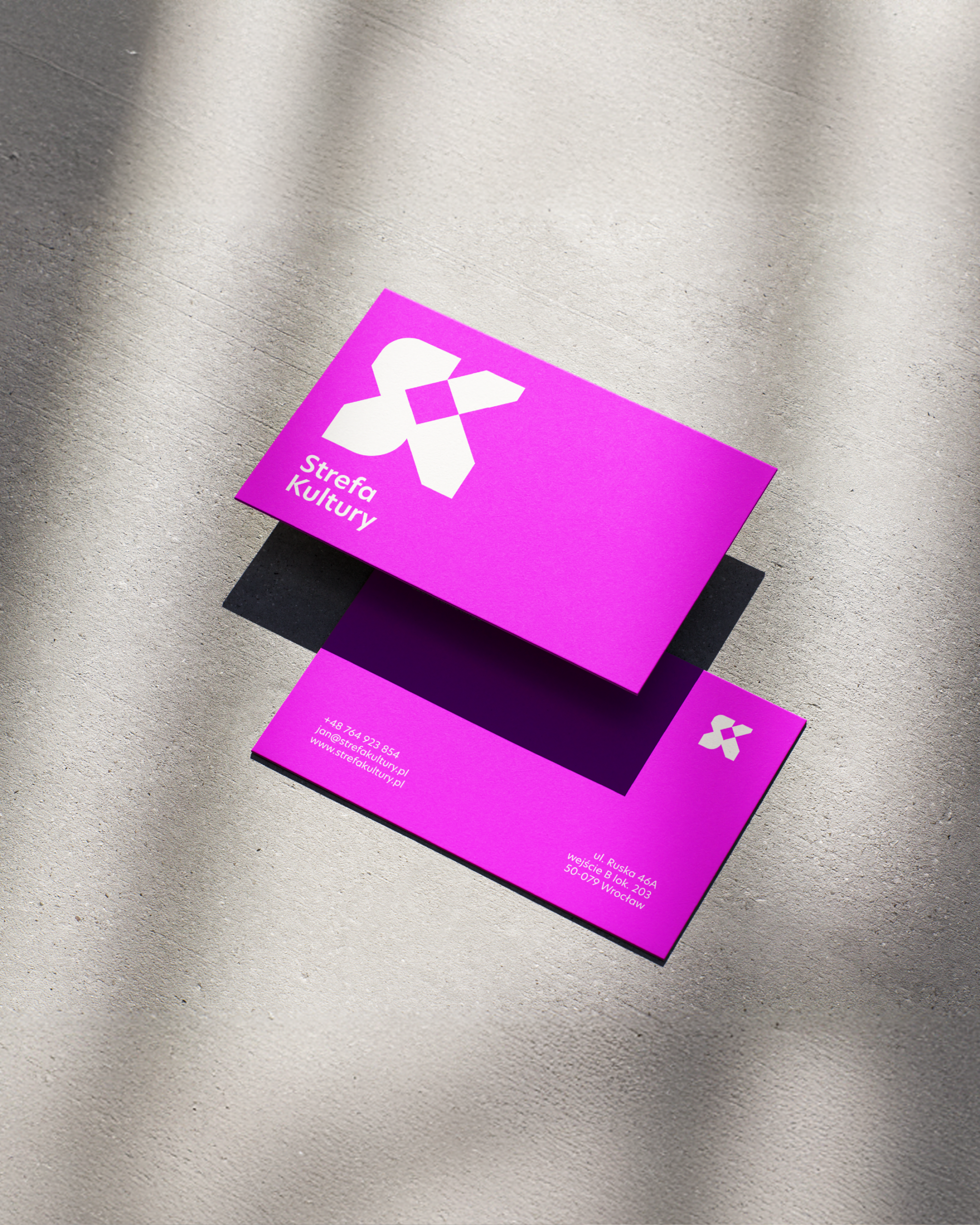 W pracy projektowej postawiliśmy na mocny kolor i dynamiczne kształty. Nowy sygnet bazuje na połączeniu liter S i K – w ich wnętrzu pojawia się kwadrat. Geometryczne pole to bezpośrednie odniesienie do strefy rozumianej jako powierzchnia. A dokładniej: powierzchnia miasta Wrocław.